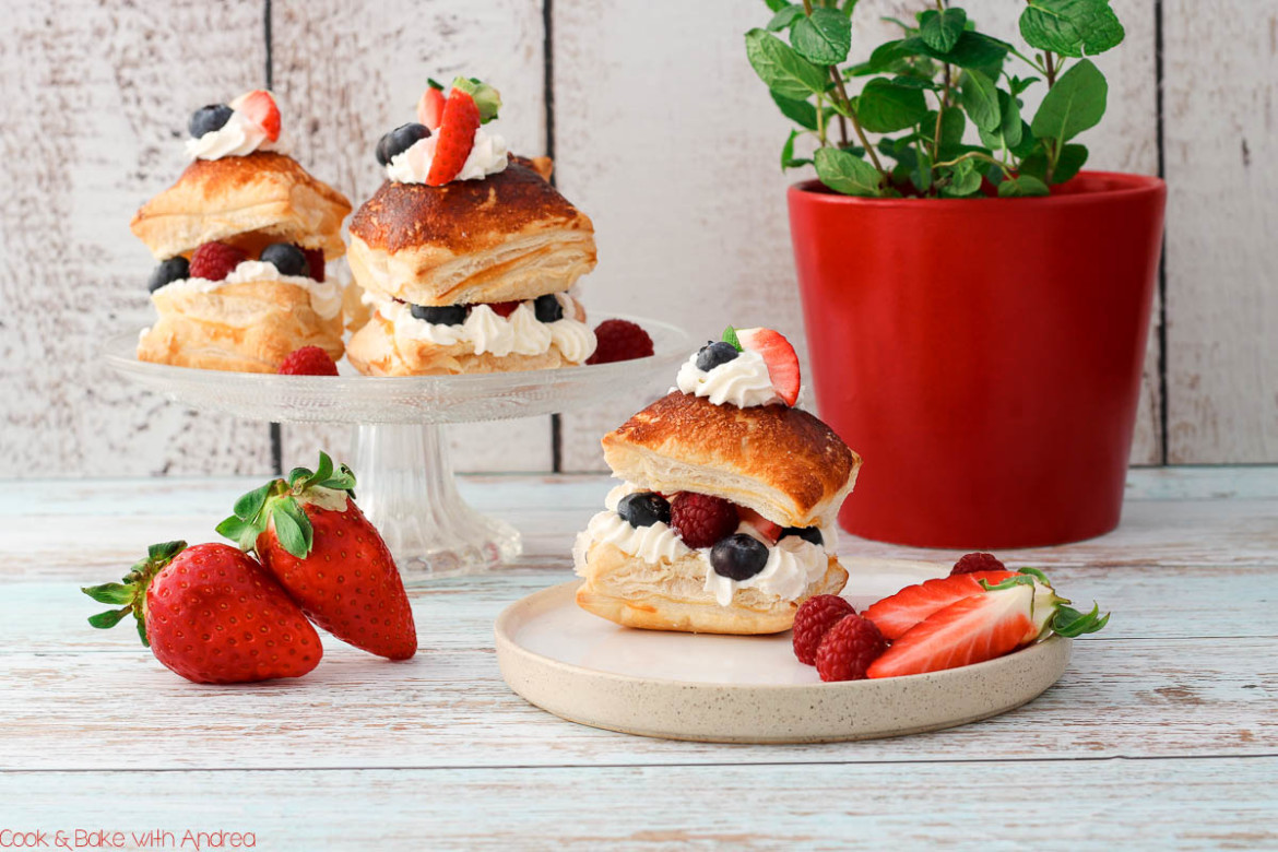 Meine Blätterteigschnitten mit Beeren und Vanillesahne sind: