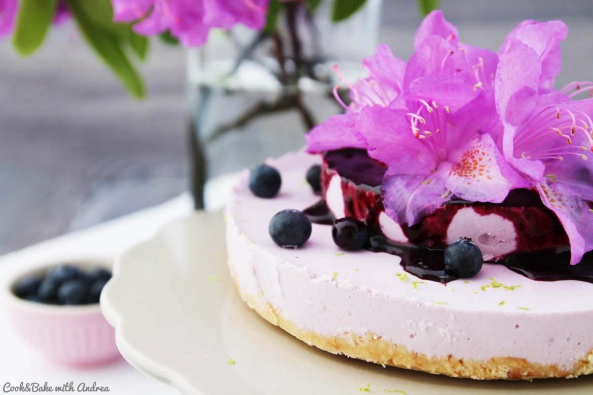 Blaubeeren? Cheesecake? Wie lecker! ♥ Ich liebe den Kuchen jetzt schon. Und er sieht so gut aus mit den Blüten als Deko 🙂