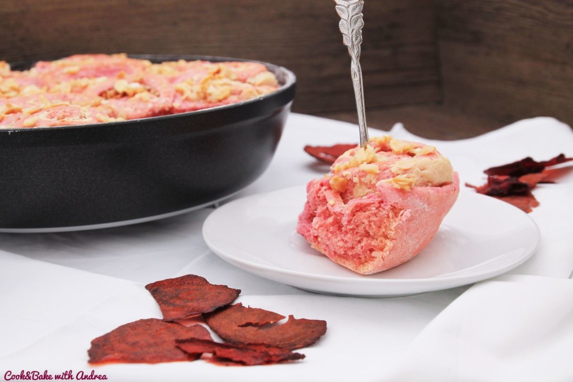 Der Herbst ist da und mit ihm tolles saisonales Gemüse. Und damit meine ich in diesem Fall die Rote Bete, die doch sehr unterschiedlich ankommt. Allerdings habe ich heute ein Rezept, bei der sie lediglich ihre Farbe abgibt, nicht aber ihren Geschmack. Ich habe mich nämlich an ein außergewöhnliches Rezept gewagt und zwar rosa Hefeschnecken mit Mandeln.